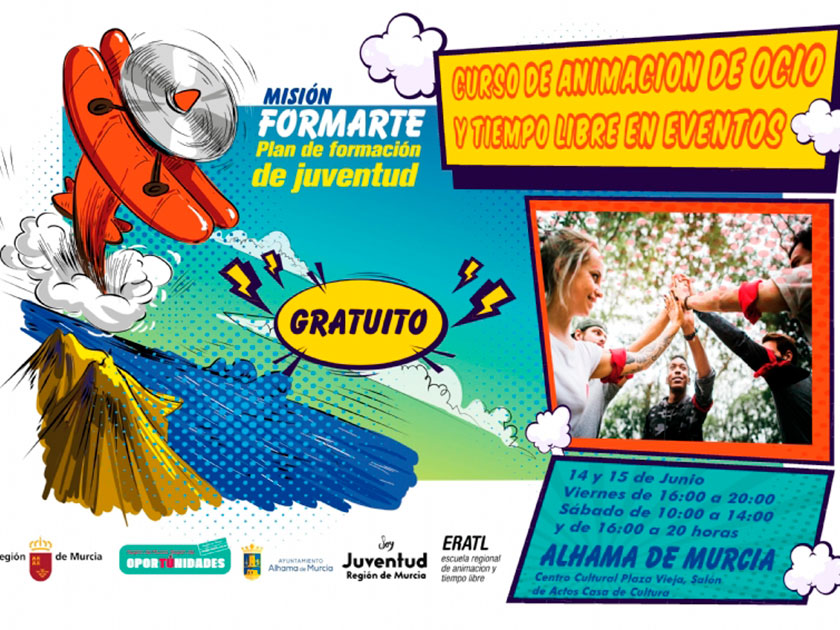 La Concejalía de Juventud del Ayuntamiento de Alhama de Murcia ha anunciado la apertura del plazo de inscripción para el Curso de Animación de Ocio y Tiempo Libre en Eventos.