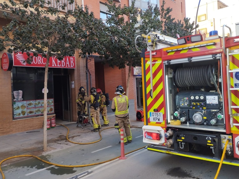 Bomberos del parque de Lorca extinguieron en la tarde del domingo el incendio declarado en la cocina de un restaurante kebab del centro de la ciudad, en el que solo se registraron daños materiales, informa el 112.