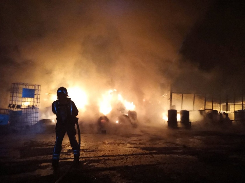 El Centro de Coordinación de Emergencias recibió una llamada a las las 4.53 horas informando del incendio que ha provocado daños en la nave y las oficinas, pero no ha dejado heridos.