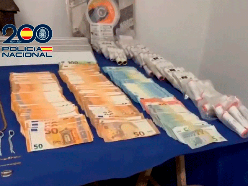 En los registros domiciliarios, los agentes encontraron casi 50.000 euros en efectivo, 16 vehículos a motor, una pinza hidráulica, palanquetas, mazos, cuatro walkie talkie, dos inhibidores de frecuencia, radiales portátiles, 51 placas de matrícula sin troquelar, dispositivos técnicos para el robo de vehículos, y prendas de ropa utilizadas en los robos, varias armas cortas y largas de aire comprimido.