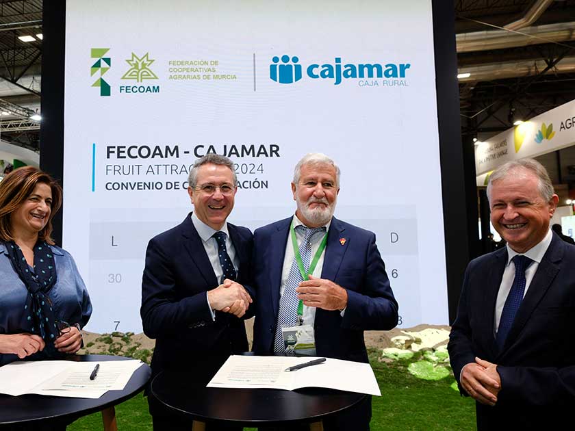 Los acuerdos se han formalizado en el estand de Cajamar de la feria Fruit Attraction que se celebra en Madrid, y permitirán a los asociados de ambos colectivos acceder a productos y servicios financieros especializados y en condiciones ventajosas, lo que les permitirá modernizar y digitalizar sus explotaciones y negocios, además de favorecer la sostenibilidad del sector hortofrutícola murciano.