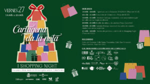 Bajo el lema ‘Cartagena da la nota’, la ciudad celebra este viernes 27 de diciembre la I Shopping Night navideña, iniciativa fruto del trabajo conjunto de Ayuntamiento y Comunidad con la colaboración de comerciantes y empresarios, con el objeto de aprovechar este época del año para incentivar las compras en el comercio local.