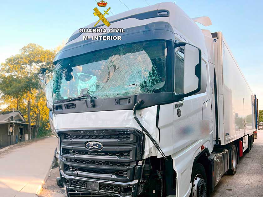 Las pesquisas resultaron positivas con la localización de una cabeza tractora con remolque, que presentaba evidentes daños por colisión. El camión se encontraba en el aparcamiento de una empresa de transportes de la pedanía murciana de Sangonera La Seca.