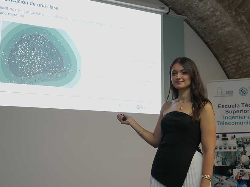 La alumna ya graduada, que continua sus estudios en el máster habilitante en Ingeniería de Telecomunicación, consiguió gracias a la temática de su TFG prácticas en la empresa pública SAES, especializada en acústica y electrónica submarina.