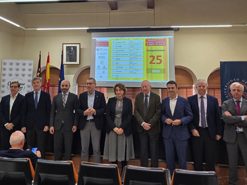 Así lo ha puesto de manifiesto este lunes el director del Info, Joaquín Gómez, durante la presentación del XXV Barómetro de la Cátedra de Empresa Familiar, junto con el rector de la Universidad de Murcia (UMU), José Luján; el presidente de Amefmur, José María Tortosa; y el presidente de la Fundación Cajamurcia, Carlos Egea.