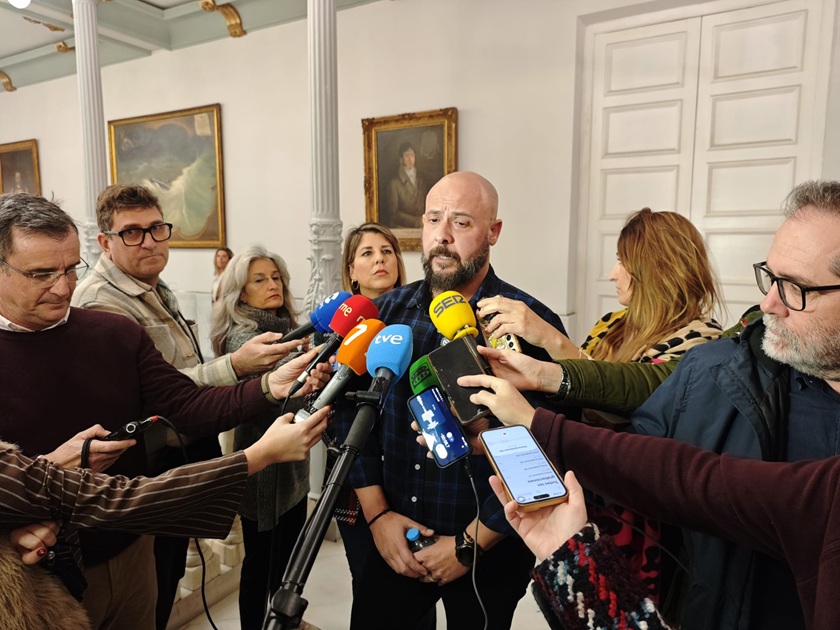 El presidente del comité de empresa de Sabic, Pascual Sánchez, atiende a los medios tras reunirse con la alcaldesa. Foto: P.B.