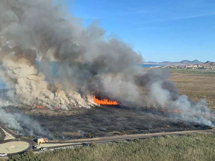 El incendio forestal arrasa 7 hectáreas de un espacio protegido junto al Mar Menor