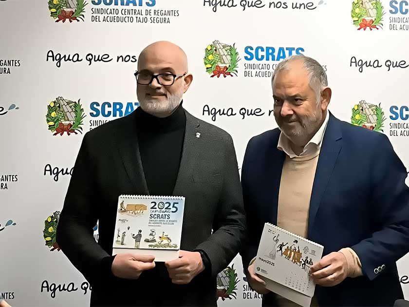 Durante su intervención, Jiménez ha agradecido a Puebla su colaboración en la elaboración de este calendario, que recoge «todas las preocupaciones de los regantes». En concreto, ha mostrado su predilección por alguna de las viñetas que muestran que «apretar demasiado las tuercas al campo traerá una subida de los precios».