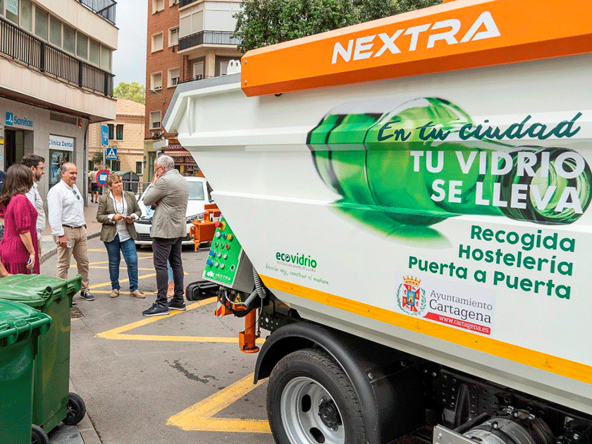 El Ayuntamiento de Cartagena y Ecovidrio ponen en marcha un servicio de recogida ‘puerta a puerta’ para fomentar el reciclado de envases de vidrio entre los establecimientos hosteleros del municipio.