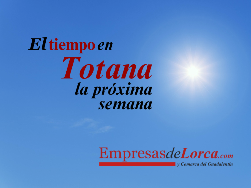 La previsión del tiempo para Totana para la próxima semana indica que el sol será el principal protagonista, con un riesgo de precipitación prácticamente inexistente y temperaturas muy agradables para esta época del año.