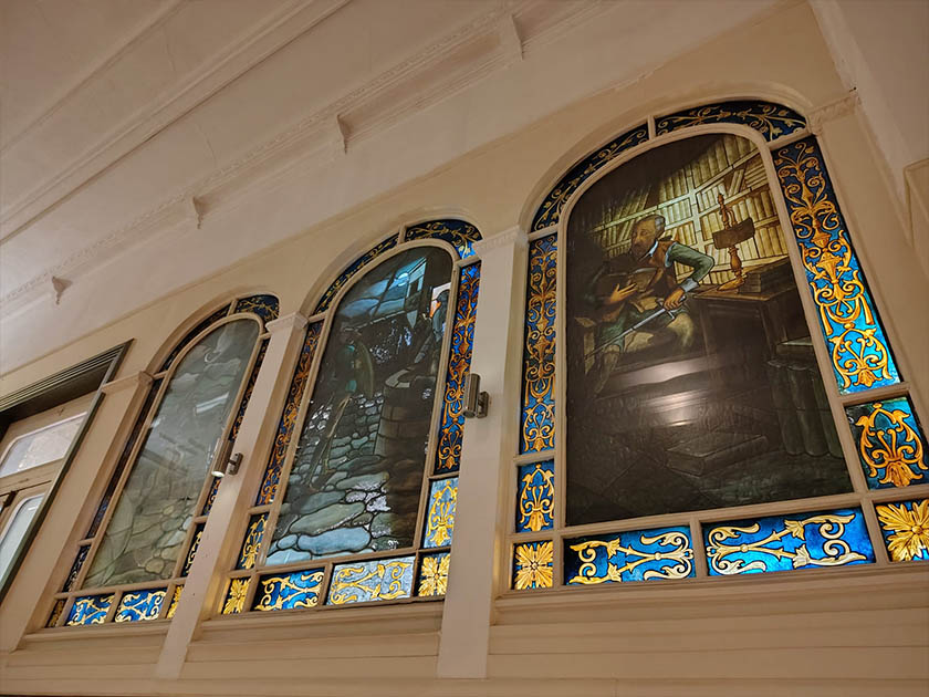 Detalle de las vidrieras del local en la pared que linda con el Casino de Cartagena. Foto: A. S.