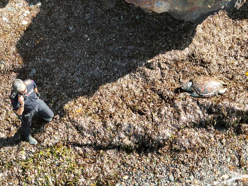 Durante la mañana del domingo los agentes de la Policía Local de Cartagena fueron informados, a través de la plataforma de emergencias 112 donde se recibieron varios avisos por parte de ciudadanos, informando sobre el avistamiento de una tortuga que al parecer estaba desorientada en las proximidades de la costa de Cabo de Palos.