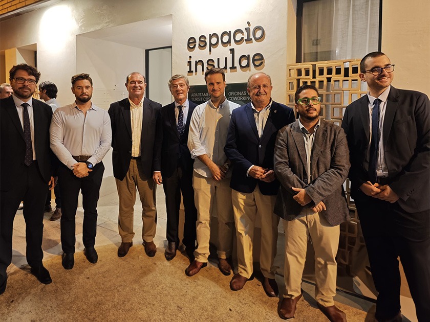 También estuvieron presentes los hermanos Gregorio y Rodrigo Morales, dueños de la empresa Cartagena Spain, que se encargará de gestionar tanto los cuatro apartamentos como las diez oficinas cerradas, zonas de coworking abierto con capacidad para acoger a unas veinte personas y dos salas polivalentes para reuniones con los que cuenta Espacio Insulae.