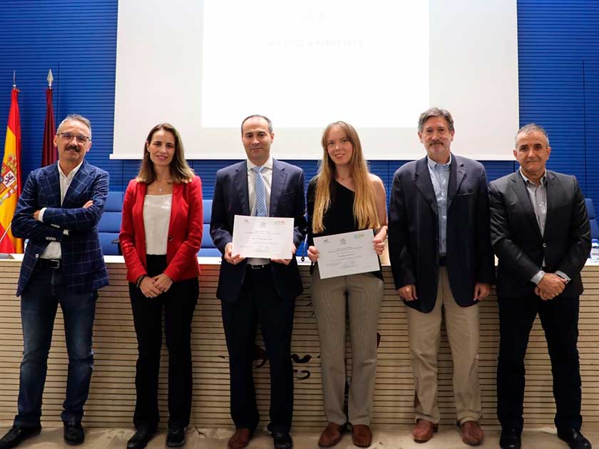 Los trabajos premiados han sido los de fin de grado “Aplicación de recubrimientos hidrofóbicos sobre pavimentos asfálticos”, de Ana Moreno, y fin de máster “Combinación de tecnologías innovadoras para la reutilización de agua”, de Cristian Pérez.