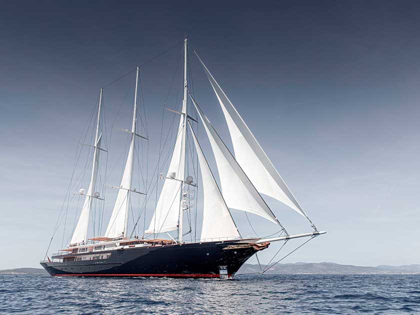 Con 127 metros de eslora, la goleta de tres mástiles de 70 metros de altura construida por Oceanco, se considera el segundo velero más grande del mundo. Puede alojar hasta 18 invitados y cuenta con un aparcamiento de dos pisos y una piscina en la popa. Además, viaja con un barco auxiliar que abastece de combustible, víveres y tripulación al velero.