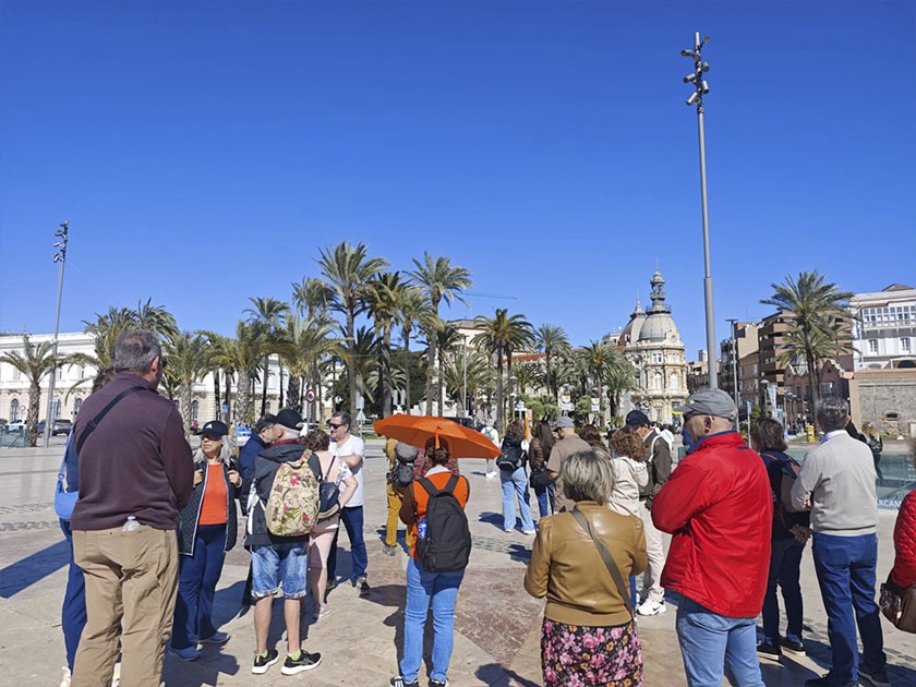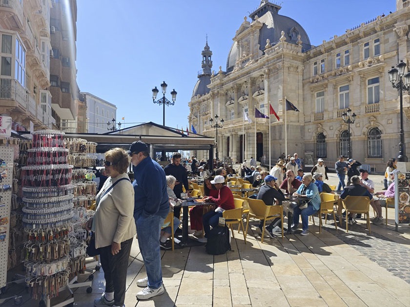 Las calles del centro de Cartagena se han vuelto a llenar este martes de turistas extranjeros. Terrazas, tiendas, museos y calles han amanecido, desde primera hora, abarrotadas de centenares de cruceristas procedentes del Sun Princess, el barco más grande de la naviera Princess Cruises, que con más cinco mil personas a bordo entre pasajeros y tripulantes, ha recalado en el Puerto de en la primera gran escala del año.