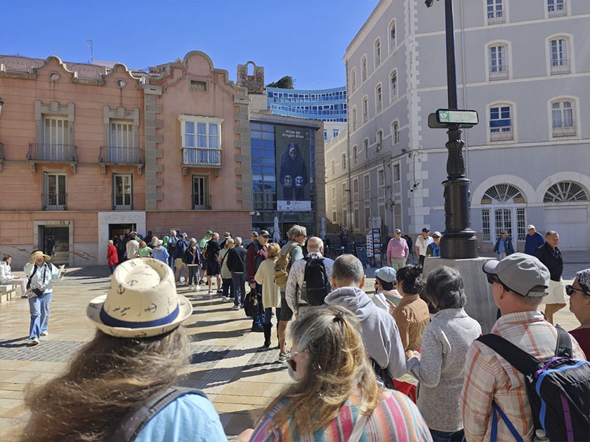 Decenas de turistas esperando para entrar al Museo del Teatro Romano el 17 de marzo de 2026. Foto: P.B.