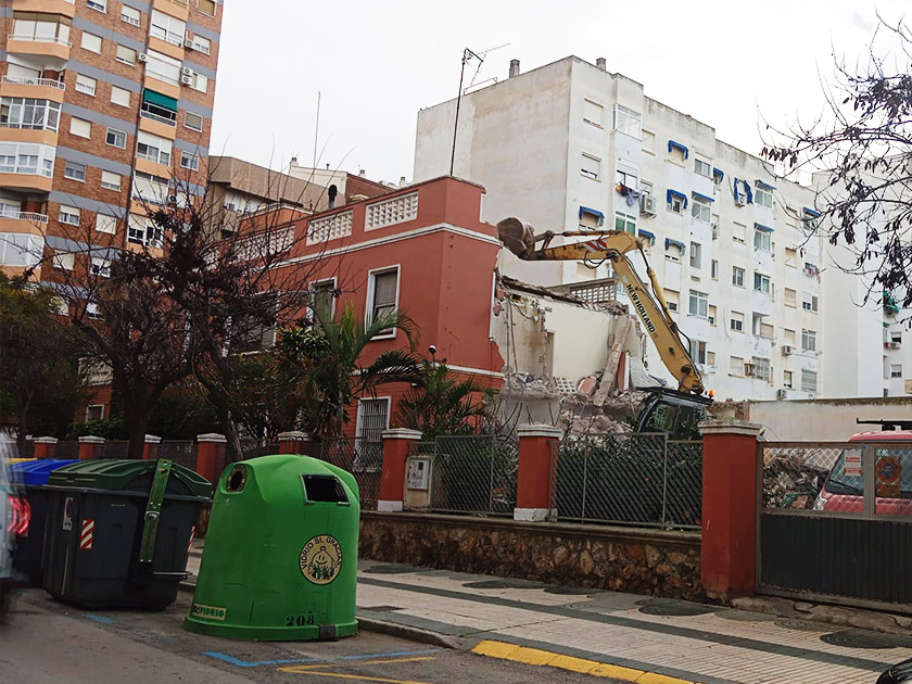 La conocida popularmente como ‘casa roja’, en la Calle Juan Fernández de Cartagena, ha comenzado a ser demolida. La construcción, que data del 1956, es una de las pocas residencias históricas que aún se mantenía en pie en la zona del Ensanche, que a principios del siglo XX se trataba de una zona residencial de ‘casas baratas’, que servían de viviendas asequibles para la clase trabajadora