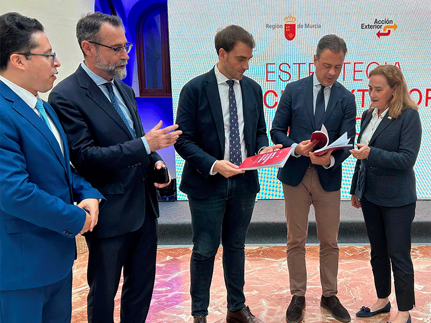 La Comunidad dispone ya de una hoja de ruta “fiable, realista y concreta” para fortalecer la presencia internacional y maximizar la proyección de la Región de Murcia. Se trata de la Estrategia de Acción Exterior 2025-2028, que hoy ha presentado el consejero de Presidencia, Marcos Ortuño, a los actores públicos y privados llamados a participar en el cometido de posicionar a la Región en el contexto internacional. Para ello, se identifican las principales oportunidades y desafíos para consolidarse como un referente de competitividad e innovación en la escena global.