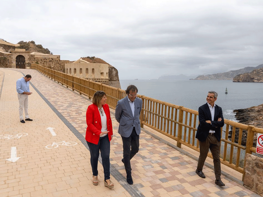 La alcaldesa de Cartagena, Noelia Arroyo, ha inaugurado este viernes, junto al vicepresidente de la Autoridad Portuaria, Pedro Pablo Hernández, la senda peatonal que une la zona de antiguas Baterías de Costa con Cala Cortina. Se trata de un tramo de 500 metros de recorrido que “nos permite completar este recorrido hasta el Faro de Navidad, bordeando el perfil portuario” ha afirmado la regidora.