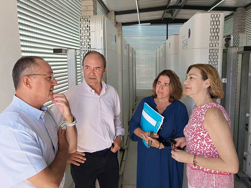 El director general de Industria Agroalimentaria, Fulgencio Pérez, en la instalación de baterías de la Bodega Hijos de Juan Gil. Foto: CARM.