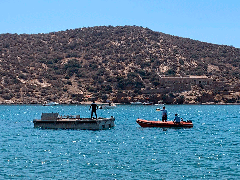 La Consejería de Turismo, a través de la Dirección General de Patrimonio Cultural, junto al equipo técnico encargado del proyecto, ha iniciado las actuaciones previas, en el yacimiento de la Playa de la Isla, en Mazarrón, para la extracción del pecio fenicio Mazarrón II mediante el traslado al lugar de la plataforma flotante de trabajo que permitirá la manipulación de las piezas una vez sean recuperadas del fondo marino.