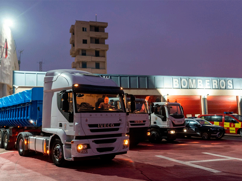 Han partido del Parque de Seguridad la mañana de este miércoles. Próximamente irán más camiones repletos de las donaciones de los cartageneros.