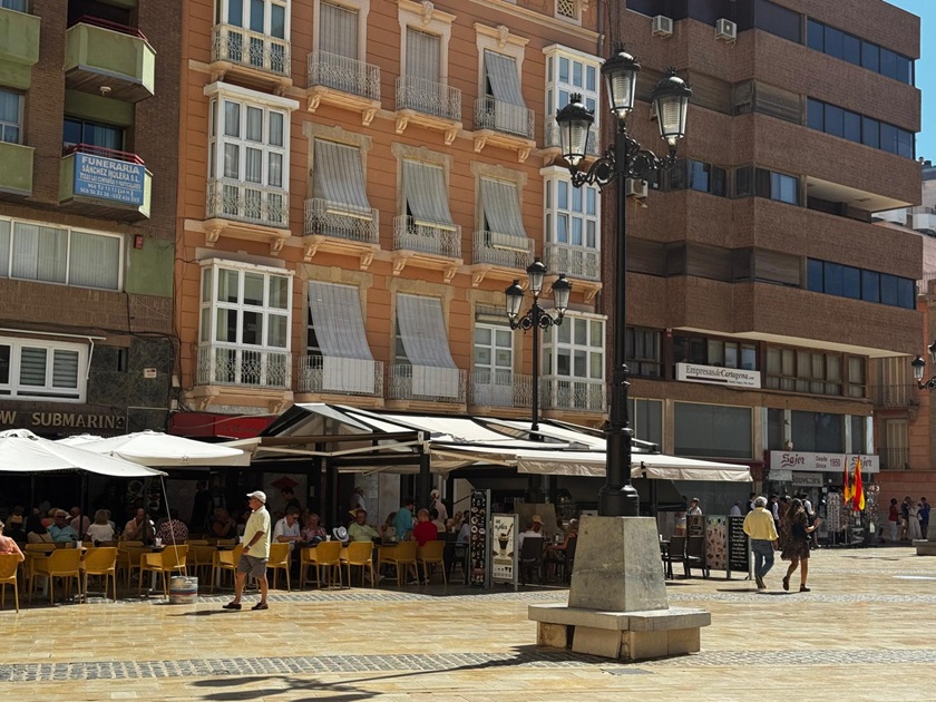 Terrazas en la Plaza del Ayuntamiento de Cartagena el jueves 20 de febrero de 2025. Foto: P.B.