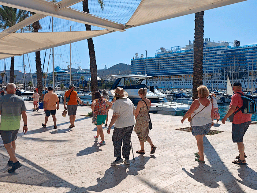 Más de siete mil pasajeros han desembarcado este lunes en Cartagena a bordo de los buques Sun Princess, con capacidad para 5189 personas, y Marella Discovery 2, con 2.198, en la mayor escala de todo el verano.