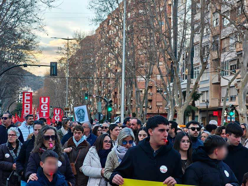 La protesta ha partido hacia las cinco de la tarde la Plaza de España y ha continuado por el Paseo Alfonso XIII hasta las puertas de la Asamblea Regional, donde los organizadores han leído un manifiesto.