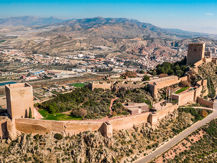 En lo alto de un cerro desde donde se contempla todo el Valle del Guadalentín se encuentran los restos de una fortaleza de origen árabe, convertida con el tiempo en símbolo de defensa de la época medieval. Cuenta con dos torres, del Espolón y la torre Alfonsina. La Torre Alfonsina sustituyó a un torreón musulmán y se convirtió en símbolo del poder castellano.