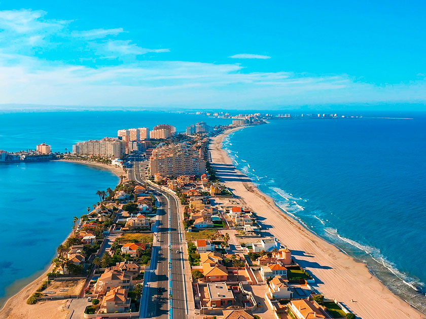 Si hay un lugar de costa único en la Región de Murcia este es sin lugar a dudas La Manga del Mar Menor. Una estrecha línea de tierra que emerge entre dos aguas, separando las del mar Mediterráneo de las del Mar Menor y permitiendo la existencia de esta laguna interior.