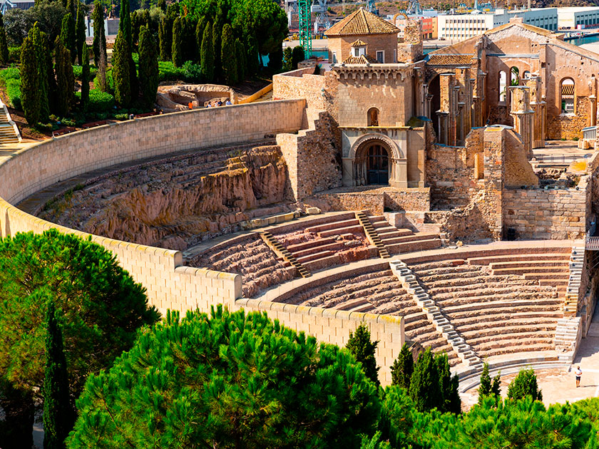 La ciudad de Cartagena destaca por conservar numerosos vestigios de la época romana, entre los que se encuentra su famoso Teatro Romano. Situado en la colina más alta de las cinco que configuran la ciudad de Cartagena, fue construido en el siglo I a.C. aprovechando la roca del propio monte. Su graderío albergaba 7.000 espectadores en las celebraciones romanas. Con las sucesivas excavaciones realizadas para la restauración integral del Teatro se recuperó una importante cantidad de material que se expone hoy día en su Museo. Una visita totalmente imprescindible para conocer el pasado de esta ciudad milenaria.