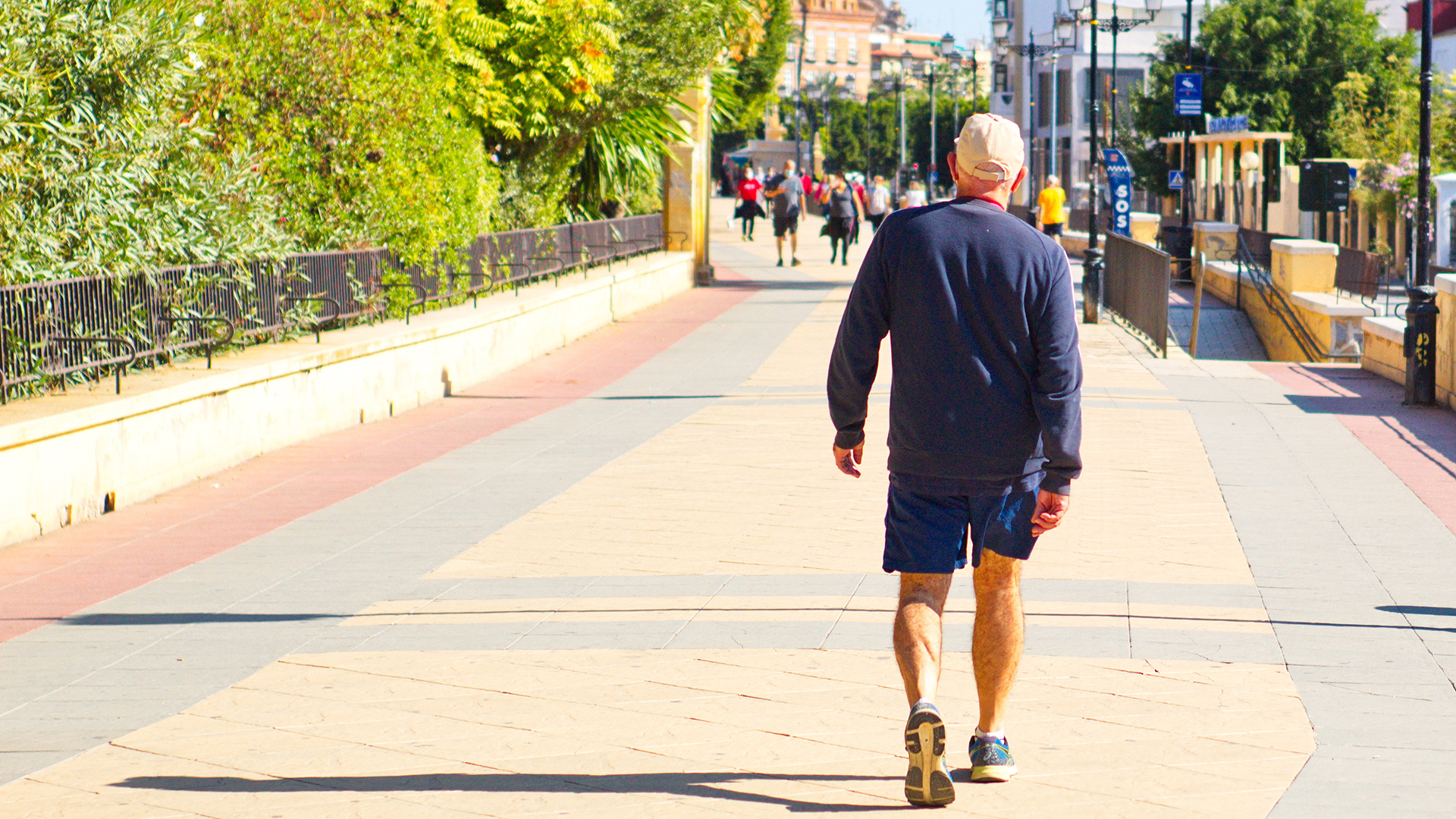 Murcia, Spain; 10 25 2020: people doing healthy exercise outdoors on the Paseo del Malecón