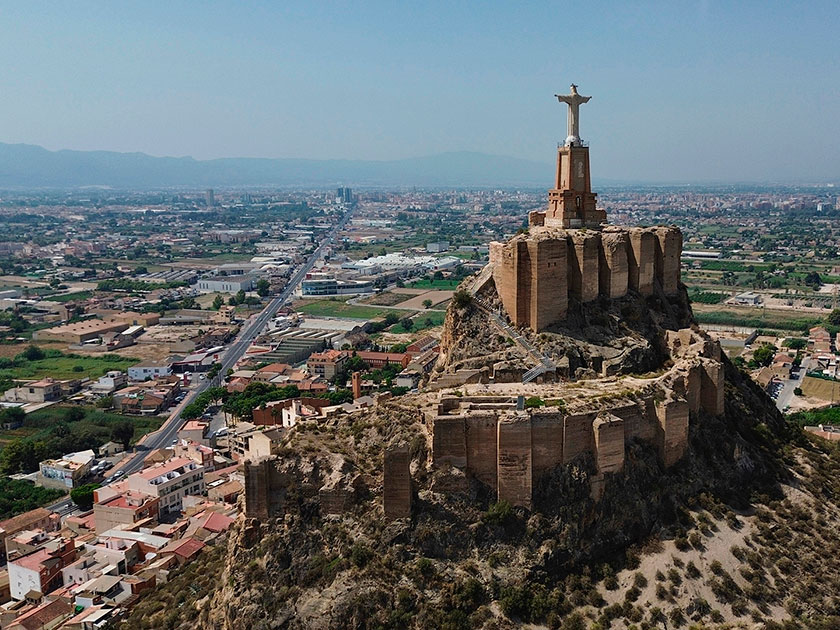 El Cristo de Monteagudo es una escultura de 14 metros de alto que se divisa a los lejos desde toda la Huerta de Murcia y también llegando a la ciudad por Alicante o Albacete. Este monumento corona los restos del castillo que en su día fue atalaya defensiva natural de los emires murcianos que residían en la ciudad.