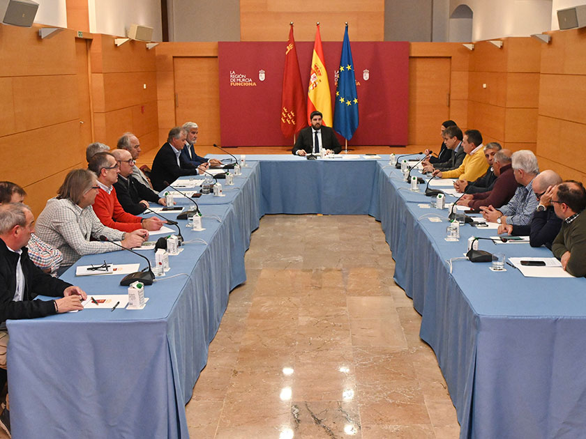 El presidente de la Comunidad, Fernando López Miras, se comprometió ayer a incrementar la cuantía que aporta al seguro agrario, en el encuentro que mantuvo con los responsables de la Federación de Cooperativas Agrarias de Murcia (Fecoam), con los que se reunió en el Palacio de San Esteban para analizar las necesidades del sector.