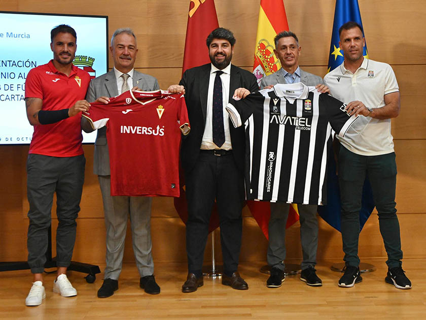 El presidente del Gobierno de la Región de Murcia, Fernando López Miras, ha anunciado este jueves que la Comunidad Autónoma concederá 75.000 euros en ayudas directas al Real Murcia y otros 75.000 euros al Fútbol Club Cartagena para apoyar su participación en la temporada 2025/2026 de la Primera Federación (grupo 2).