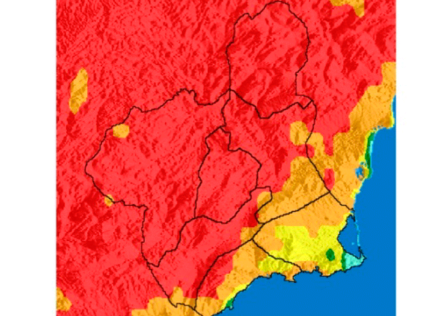 El nivel de riesgo de incendio forestal previsto por la Agencia Estatal de Meteorología (Aemet) para este jueves es extremo en toda la Región, excepto en el litoral, donde es alto o muy alto, según fuentes del Centro de Coordinación de Emergencias consultadas por Europa Press.