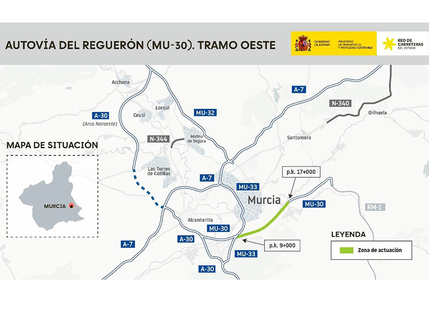El Ministerio de Transportes y Movilidad Sostenible ha adjudicado un contrato de 3,6 millones de euros para la redacción del proyecto del último tramo de la autovía de circunvalación de Murcia (MU-30), una actuación necesaria para completar el cierre sur de esta infraestructura viaria.