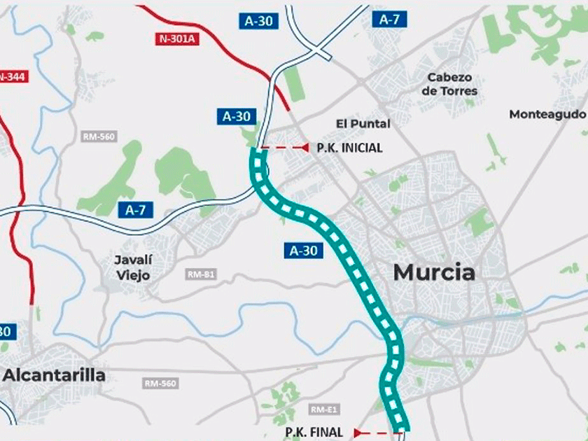 Una inversión de 18,5 M€ reducirá el ruido en la A-30 a su paso por Murcia