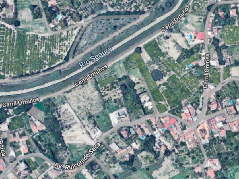 Para rehabilitar el meandro situado en la margen derecha del río, a la altura de la localidad murciana de Rincón de Beniscornia, se actuará sobre una superficie total de 81.777 metros cuadrados, situados en la margen derecha del río, delimitado por la avenida de Rincón de Seca, y al este, por el carril de Ontines.